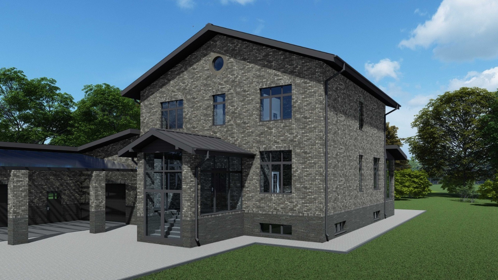 • Наружные стены - Волгоградский керамический термоблок 44 с отделкой из кирпича ручной формовки Донские Зори "Морозово", на черной цветной смеси Perel.